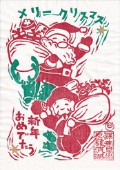 サンタクロースと大黒さま。 クリスマスと新年のお祝いで、 プレゼントをお届けします。